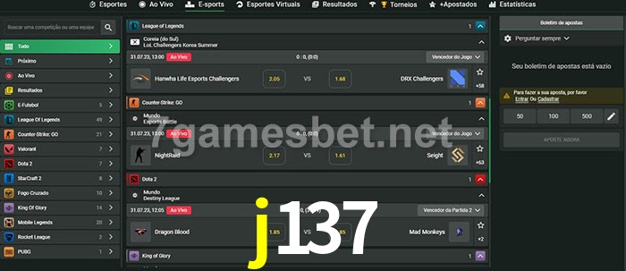 O j137 oferece uma grande seleção de opções de apostas em e-sports com probabilidades competitivas